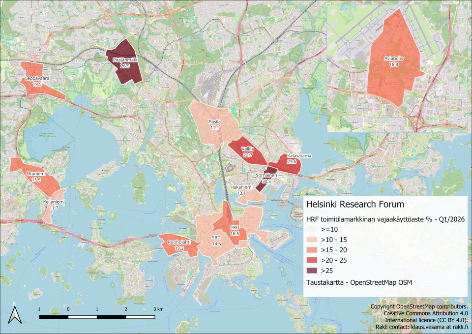 Pääkaupunkiseudun toimistomarkkinoiden osamarkkina-alueet, Q1/2026